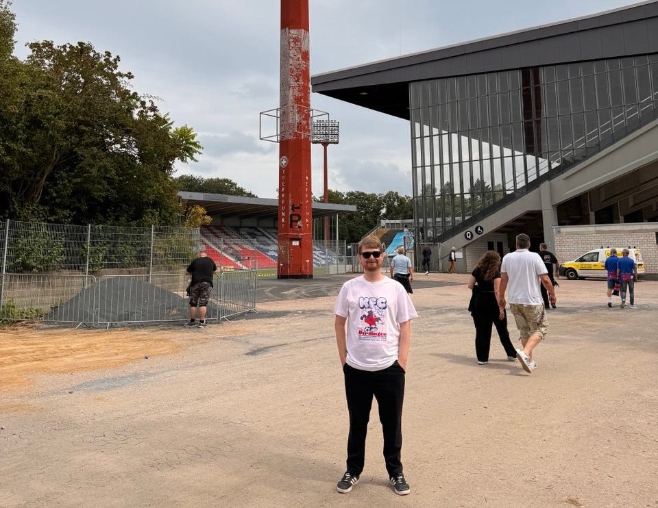 Johannes: Als wir in der 3. Liga gespielt haben, hatte ich zum ersten Mal nach fast zwei Jahrzehnten KFC-Fandasein die Möglichkeit, Auswärtsspiele außerhalb von Nordrhein-Westfalen zu sehen. Zwischendurch, etwa in den drei Jahren in der sechsten Liga, konnte man mit dem Fahrrad zu Auswärtsspielen reisen. In einer Saison zum Beispiel haben wir nicht nur gegen die erste, sondern auch mit der zweiten Mannschaft des SV Straelen in einer Liga gespielt. Und alle vier Spiele verloren. Dass wir dann in der Sportschau zu sehen waren und ich mit meinem Verein nach Kaiserslautern, München, Karlsruhe oder Rostock fahren durfte, das fühlte sich an wie eine Belohnung für die Treue in schlechten Zeiten: Jetzt waren wir endlich mal dran! Deswegen war ich unserem Investor gegenüber leider auch relativ unkritisch damals. In der 11Freunde wurde ein kleiner Text von mir veröffentlicht, in dem ich ihn verteidigt habe: Ist mir heute sehr peinlich. Denn auch wenn es sportlich eine erfolgreiche Zeit war, wurde damals viel kaputt gemacht bzw. Chancen wurden nicht genutzt. Beispielsweise wurde ausschließlich in die erste Mannschaft, aber quasi nichts in die Infrastruktur oder die Jugend investiert. Wenn jetzt wieder jemand mit zig Millionen im Koffer vorbeikäme, ich fürchte, ich würde ihm zumindest mal zuhören, was genau seine Pläne wären. So ehrlich muss ich sein. Es dürfte allerdings keine Alleinherrschaft und keine komplette Abhängigkeit von ihm geben, siehe Ponomarev oder Bayer. Der Verein und seine Mitglieder stehen über allem. Grundsätzlich kotzt mich aber natürlich an, um wie viel Kohle es im Fußball geht. Rund um den völlig wahnsinnigen Woltemade-Transfer haben sich ja viele geäußert: JETZT ist es aber wirklich zu viel Geld, das da ausgegeben wird! Als wären nicht auch dreißig oder zwölf Millionen Euro für irgendeinen Spieler schon unverhältnismäßig viel Geld gewesen. Das, was man unter "ehrlichem" Fußball versteht, gibt es wahrscheinlich im Profifußball nicht mehr. Fußballspiele ansehen kann man sich aber ja glücklicherweise nicht nur bei Sky, Wow, Magenta und DAZN, sondern auch um die Ecke.